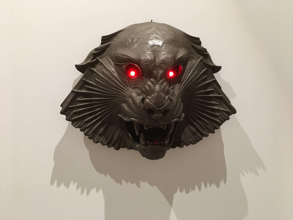 目が赤く光るし、人が作品の前に立つと威嚇するかのような音を出すようになっていました。