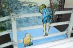 プーさんの物語のはじまりは、クリストファー・ロビンが、プーをひきずりながら、階段をおりてくるところ。